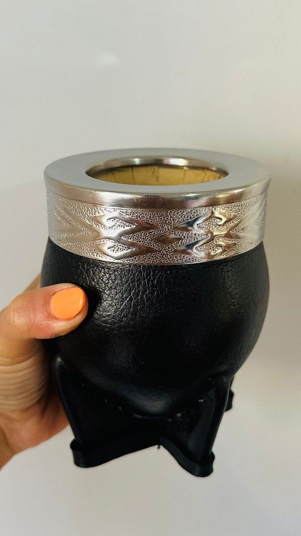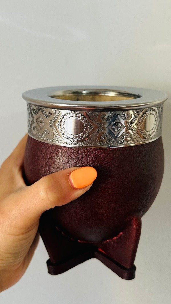 El mate es de Calabaza, la virola es de acero inoxidable, 100% forrado en cuero